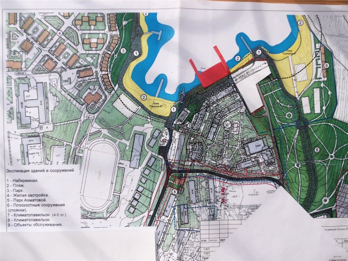 Форпост сообщал о двух проблемных стройках микрорайона – молов в акватории бухты Песочной и намерениях строительства климатолечебницы на пляже Солнечном. Однако существует и третья «болевая точка» Стрелки - сквер Анны Ахматовой, который тесно связан и с экологией бухты, и с «уводом» территории коммунального пляжа.