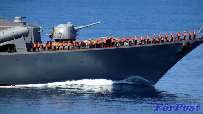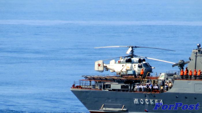 Задумка и реализация проекта с участием ГРКР "Москва" принадлежит замкомандующего ЧФ контр-адмиралу Куликову. Исполнили задумку на пять баллов!