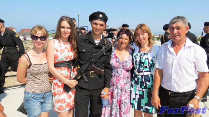 На церемонию присяги прибыли командующий Черноморским флотом вице-адмирал Александр Витко, его заместитель по работе с личным составом капитан 1 ранга Юрий Ореховский, командир отдельной бригады морской пехоты ЧФ Герой России полковник Владимир Белявский, командир Краснознаменной бригады ОВР, воспитавшей 12 Героев Советского Союза капитан 1 ранга Валерий Зубков, начальник школы младших специалистов капитан 3 ранга Евгений Клинков, командир части капитан 1 ранга Александр Потоцкий… Прибыл один из прославленных защитников Севастополя в годы Великой Отечественной войны полковник в отставке Иван Мацигор, консультант командующего ЧФ по работе с ветеранами контр-адмирал запаса Александр Ковшарь, помощник командующего ЧФ по работе с верующими военнослужащими протоиерей Александр (Бондаренко), настоятель Свято-Никольского храма в Камышах отец Сергий, директор мемориального музейного комплекса капитан 1 ранга Валерий Володин, родители, бабушки и дедушки, девушки молодых черноморцев. Причем из разных уголков России, начиная от ближайших соседей из Краснодарского края и заканчивая далеким Татарстаном…