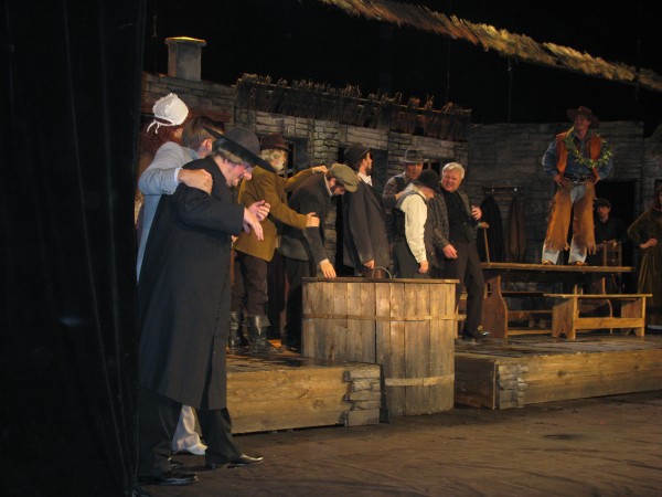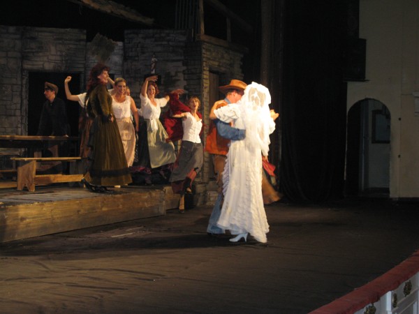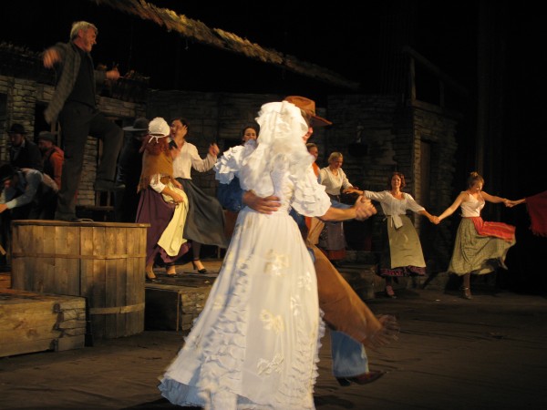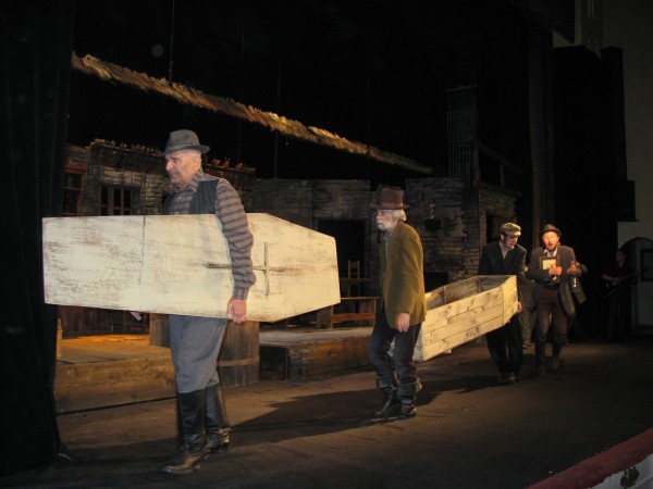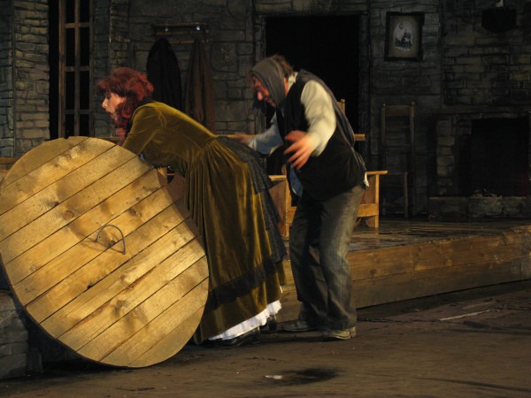 И все же большей частью она очень веселая и оригинальная. Ну, где вы еще увидите настоящее купание раздетого мужчины на сцене. Да еще когда за ним ухаживают сразу две женщины! Ему натурально раз пять-шесть намыливают голову и ополаскивают её водой. Соперничество молодой Пегин и вдовушки Куин, которая во что бы то ни стало решила переманить к себе удальца – трогает и умиляет. А общение раненого сыном старика Мехоуна с вдовушкой Куин рождает просто взрывы смеха. Прекрасная, великолепная игра актеров!