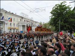 10.00, пл.Нахимова. Торжественное поднятие государственных флагов и копии Знамени Победы. Парад Победителей. Прохождение войск Севастопольского гарнизона, марш-парад духовых оркестров