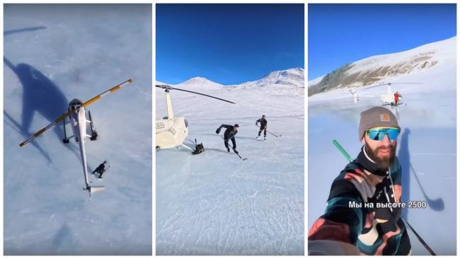Новосибирский фотограф Вадим Махоров и пилот вертолёта совершили посадку на замерзшую реку Текелю у подножия горы Белуха на Алтае, чтобы сыграть там в хоккей. Инцидентом заинтересовались надзорные органы.