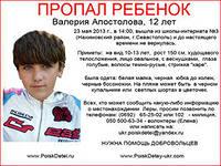 Пропавшую 12 летнюю Валерию Апостолову сотрудники севастопольской милиции вернули родителям. Напомним, что заявление о пропаже Валерии поступило в милицию 27 мая от матери девочки. Женщина сообщила, что дочь ушла из школы-интерната №3, где она учится, еще 23 мая, но домой не вернулась. Ранее Валерия неоднократно уходила из дома, в прошлом году сотрудники милиции нашли ее на пляже Хрустальный.