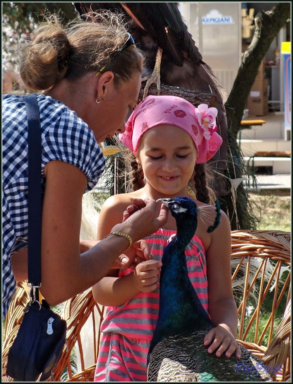 "Сейчас хозяева этих несчастных животных докурят,бросят под ноги сигареты и научат ребёнка, как павлина любить,после съёмок подарив ему перо из хвоста павлина-альбиноса, нещадно эксплуатируемого здесь в прошлом году и, видимо, погибшего от жестокого обращения."