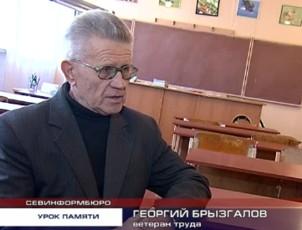 Рассказывать школьникам Нахимовского района о героической истории города – традиция, заложенная ветеранами Севастопольского морского завода. Уже 12 лет в средней школе № 11 уроки Памяти проводит ветеран труда Георгий Брызгалов.