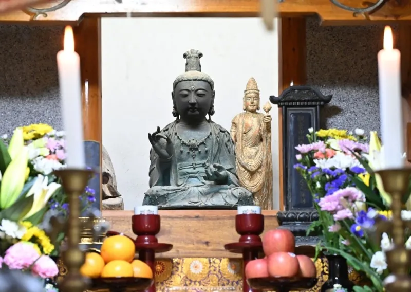 Сидящий бодхисаттва Авалокитешвара весит 38,6 килограмма, сделан из бронзы и имеет высоту 50,5 сантиметра.