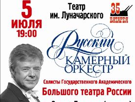 5 июля в 19:00 на сцене Севастопольского академического Русского драматического театра им. А.В. Луначарского состоится концерт Русского камерного оркестра и солистов Государственного академического Большого театра России Оксаны Лесничей и Федора Тарасова.
