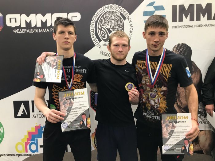 Чемпион Владимир Смуров, Ренат Ковалевский — серебряный призёр, Сергей Печкин — бронзовый призёр Первенства России по ММА (IMMAF) среди юношей 16-17 лет. Каждый из них провёл по три поединка и оформили пять нокаутов на троих в самой конкурентной весовой категории до 65 кг