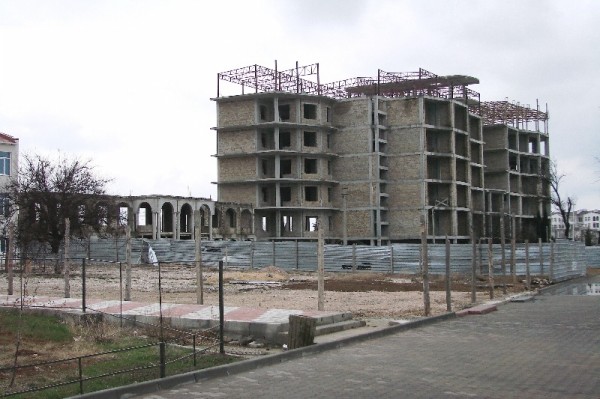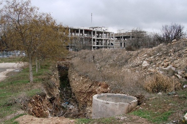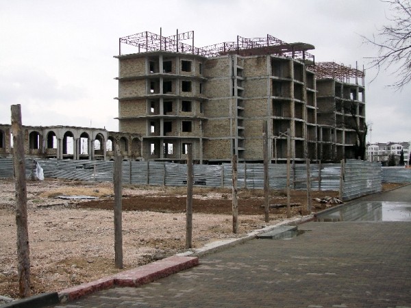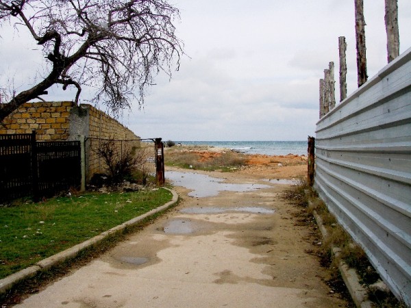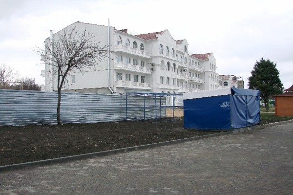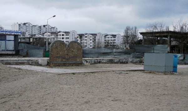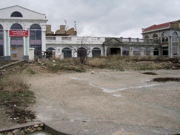 За забором недостроенный жилой дом с призывным слоганом «Дом у греческой хоры». За ним тянутся недостроенные сооружения, целевое назначение которых остается загадкой не только для простых граждан, но и для потенциальных покупателей: то ли там должны быть кабаки, то ли магазины с вещами первой необходимости для пляжников, то ли жилые квартиры, то ли что-то еще, на что лично у меня фантазии не хватило. Видимо, у покупателей тоже. Поэтому растяжки «Продажа, аренда» сиротливо взывают к ним уже не один год.