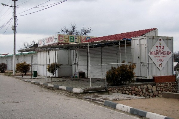 Справа вид на море перекрыт убогими сараями или ларьками, на первом из них красуется выгоревший щит с надписью «229 лет Севастополю городу-герою», по левую руку тянутся заборы, исписанные сикось-накось предложениями о сдаче квартир посуточно. Посреди тротуара торчит на штыре нечто (возможно, в прошлом предназначенное для телефонов-автоматов). Сегодня же это «нечто» органично вписалось бы в пейзаж фильма Тарковского.