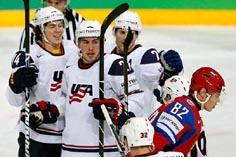 США разгромили Россию 8:3! Я за Россию болел. А заголовок слабенький.
