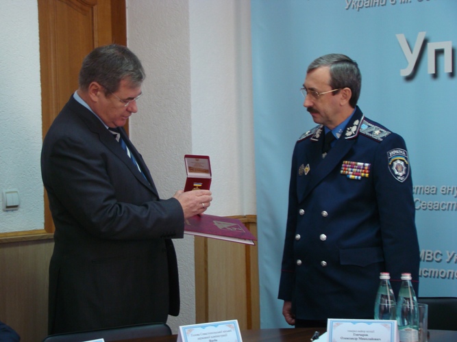 На память о работе в Севастополе глава города вручил ему памятный знак и грамоту городской государственной администрации.