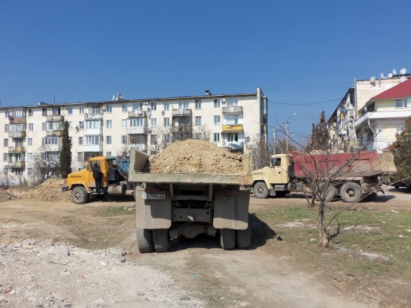 Сейчас возят, по нашим севастопольским меркам, довольно неплохую землют (да это и на фотках ыидно). Если после засыпки жильцы близлежащих домов не поленяться и разобьют на этом месте сад-парк, высадят деревья. Деревьям расти будет очень раздольно, будет вместо камня-известняка, намного метров вглубь бкдет теперь землица. Хороший зеленый уголок отдыха