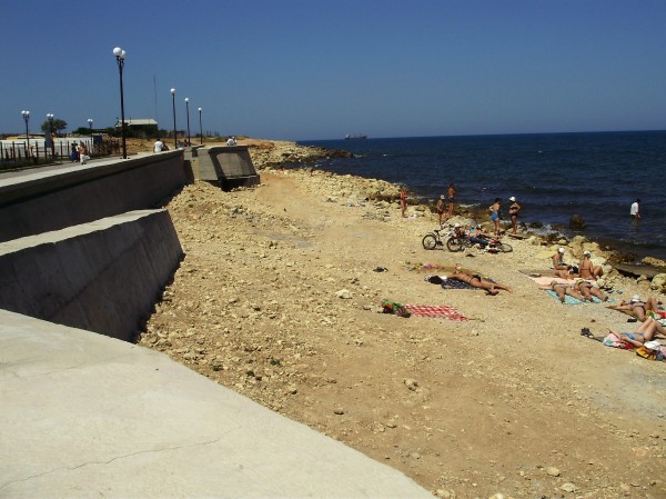 На фоне всего этого великолепия жалко смотрится крохотный кусочек не обустроенного пляжа. Севастопольцы - уже как бедные родственники, скоро им места вообще не останется. Будто обязательно было строить Банковскую академию в Парке Победы. Дали им палец, а они уже по локоть откусили. Оградили свой парк, понастроили безвкусных беседок (стыдно за город), теперь дальше как тараканы полезли. Эту академию можно было бы строить в степных районах - там места достаточно. так нет же, все к морю лезут. Тошнит от этих рож.