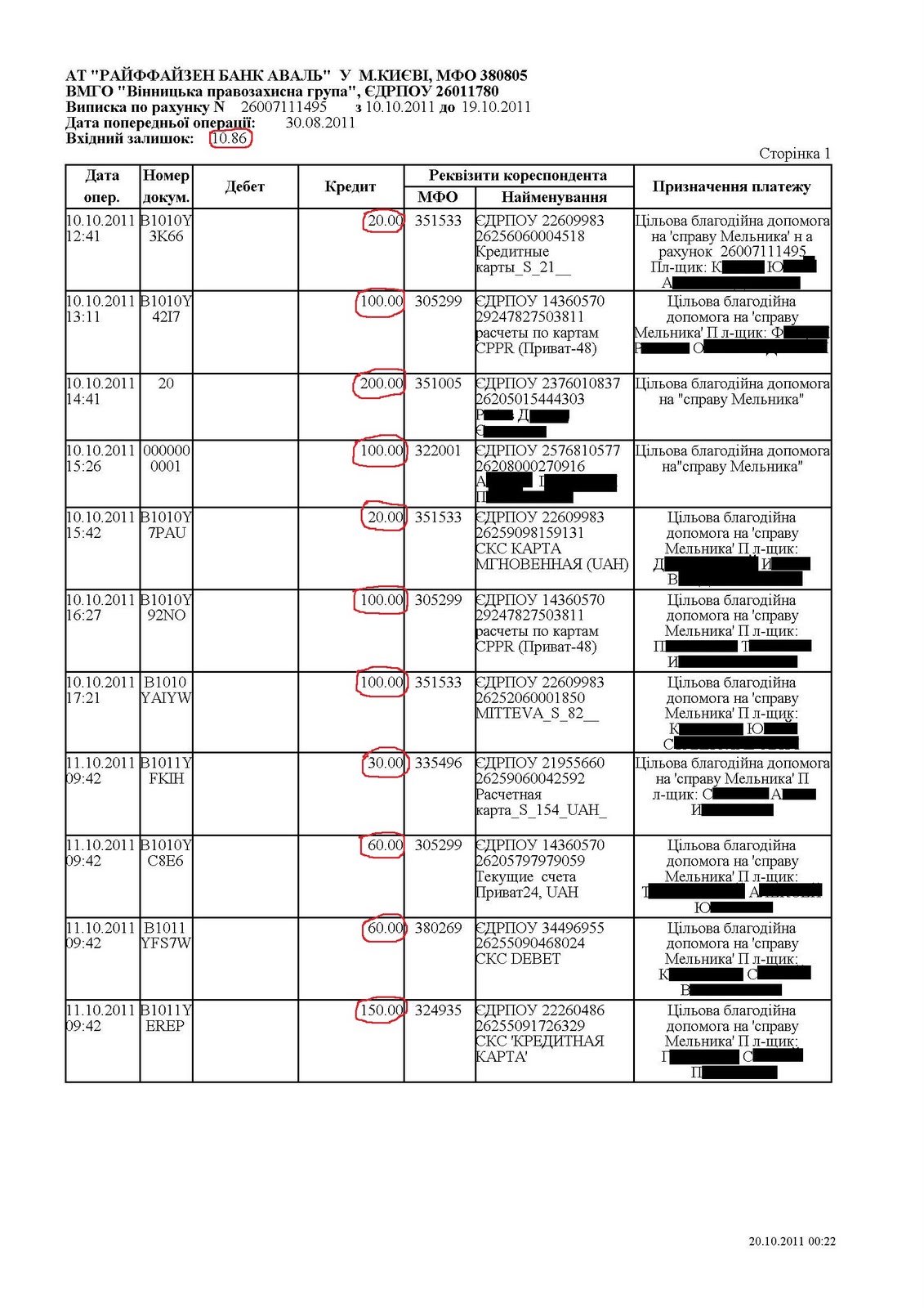 10 октября я обратился к читателям моего блога с просьбой: собрать средства для оплаты защитника жертве Мусорского произвола, жителю села Остапковцы Немировского района Винницкой области Олегу Мельнику.