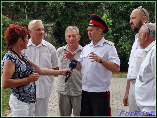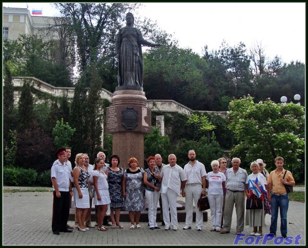 "Мы собрались в честь пятилетней годовщины со дня установки памятника великой императрице Екатерине II, которой мы обязаны существованием этого города. Я три месяца участвовал в охране этого памятника, были неоднократные стыки с так называемыми украинскими националистами, которые хотели испачкать гео краской...", - вспоминает подъесаул казачьей общественной организации "Русь" Арсений Вартанович Тевосов: