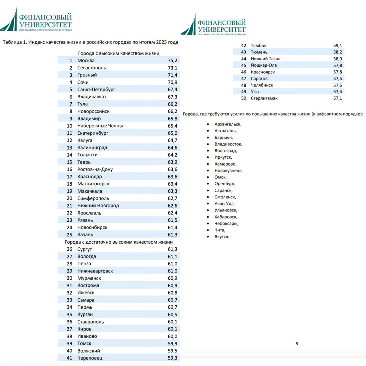 По итогам 2025 года Севастополь занял второе место среди городов страны, оказавшись в десятке вместе с Москвой, Грозным, Сочи и Санкт-Петербургом.
