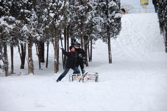 Событие это редкое, потому горожане спешат насладиться общением с этим чудом природы – дурачатся, фотографируются, лепят снежных баб. На улицах появляются даже такой редкий для наших краев вид транспорта как санки.