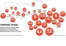 Как говорится в материале издания, Симферополь, Севастополь, Днепропетровск, Горловка и Кировоград с 6-7,2 тяжких преступлений на 1000 жителей занимают первые места среди городов из упомянутого рейтинга.
