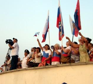 Жалкое зрелище. Вот российский сайт Лента.Ру например написал, что было всего 500 энтузиастов. Ему-то вы не можете не верить, он же российский! Помоему для выходного дня и 300 тысячного Севастополя это прото позор! Вот статья - http://www.lenta.ru/news/2008/08/23/moskva/