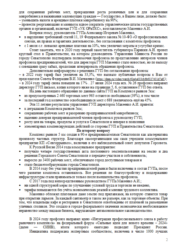 У Моложавенко английский пример, у профсоюза микробизнеса — севастопольский, в материале «Сага о 1-м профсоюзе микробизнеса, 2025. Обращение к губернатору Севастополя».