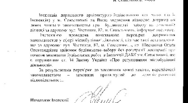 Несмотря на запрос депутата ВР Колесниченко В.В. и обращения общественности, в Севастополе продолжается беззаконие.