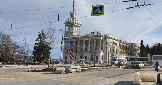 Грубо и топорно срублено возле к/т "Победа" и памятника Кузнецову. Никчемные постаменты под афишными тумбами. ДБ-ХаОс сужением проезжей части обрек город на постоянный транспортный колапс на Б.Морской.Абсолютно никчемное расширение тротуаров,которым вряд ли кто воспользуется.Люди будут передвигаться вдоль деревьев по старой территории.Ну,почему понаехи такие тупые? Ведь перед началом ремонта им втолковывали о недопустимости сужения проезжей части.Севастопольские архитекторы выступали и письменно,и устно со своими грамотными предложениями,но "Два дебила - это сила!" Правительство,не считаясь с интересами севастопольцев,прогнулось под ДБ-ХаОс.В результате - испохабленная улица и площади.А всего-то надо было заменить коммуникации и плитку! Не сомневаюсь,что правительство примет это убожество.Дальше - сакральная фраза от С.Лаврова.