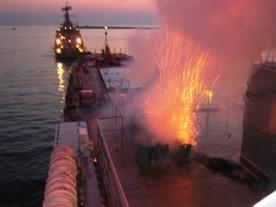 По его словам, сегодня «Пиро-Росс» оснастил самой современной техникой специальный салютный дивизион (на базе КАМАЗов), который производит салюты в дни государственных праздников в Москве, например в День защитника отечества. А с 2002 по 2007 годы установки, которые монтируются на кораблях, получили все флоты и флотилии ВМФ. Но первым был ЧФ, на котором совместно с флотскими специалистами проводили испытания, обучали персонал и проводили первые фейерверки на День ВМФ с применением установок морского базирования «Радуга». Недавно флотом приняты на вооружение в дополнение к 105 мм, разработанные предприятием более мощные установки 125мм.