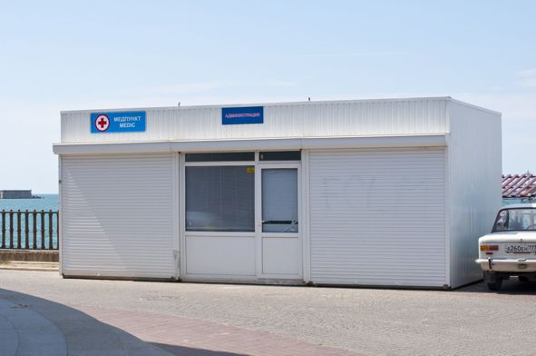 Ситуация, сложившаяся на данном пляже, мягко говоря, печальная. Все плюсы, найденные в прошлый раз, были перечеркнуты практически наплевательским отношением к отдыхающим. Действительно существующий, как указано в требованиях, медпункт — закрыт, закрыто и помещение с надписью «администрация».