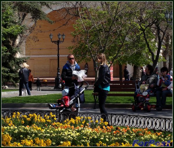 На мгновение всплыло даже знаменитое: "Весна! Выставляется первая рама..." Но только на мгновение. Потому что сразу с двух сторон ко мне подскочили наглые молодые люди, буквально в нос сующие голубей, которых я непременно должна "потрогать".