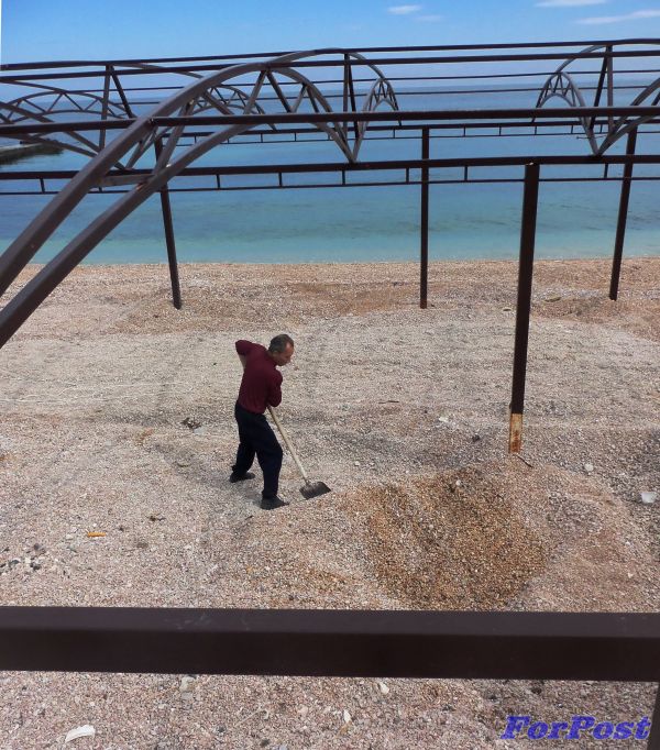 Пенсионер с внуком тоже не в восторге от работ, ведущихся на пляже: «Это самая удобная часть пляжа, мы всегда с внуком здесь купаемся. В прошлом году её застелили каким-то линолеумом… Зачем? Должна быть просто галечка!»