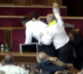 Как сообщают украинские СМИ, после закрытия пленарного заседания парламента депутат от фракции "БЮТ-Батькивщина" Александр Гудима и депутат от НУ-НС Иван Стойко вытолкали депутата из фракции Партии регионов Вадима Колесниченко, который является одним из авторов языкового законопроекта, из президиума парламента в ложу правительства и там начали его бить. Позже к ним присоединились еще несколько народных депутатов, они разорвали на Колесниченко рубашку. Также сообщается, что в результате стычки до крови избили депутата от БЮТ Николая Петрука.