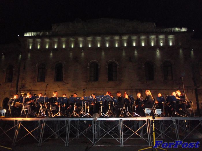Играет оркестр ВВС Греции. На фото прекрасная эллинка Нелли, ставшая лицом фестиваля «Спасская Башня» в Москве. Афишами с её изображением были обклеены все билл-борды российской столицы летом 2012 года.