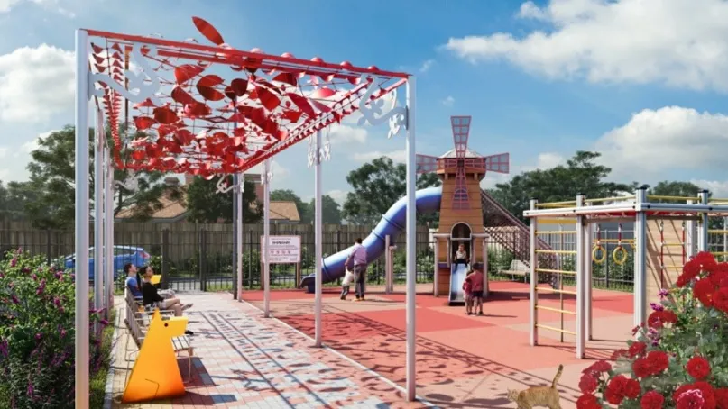 В «активной» зоне появятся площадка для воркаута, детский игровой комплекс в виде мельницы и детский спортивный комплекс с элементами скалолазанья. В «тихой» можно будет спокойно отдохнуть на скамейке или погулять, любуясь озеленением.