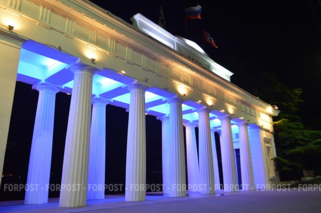 Насчёт антиэстетики на Графской -- синие портолеты и сине-фиолетовая подсветка колонн явно отражают чьё-то извращённое понятие о прекрасном. Прослеживается авторский замысел -- создать депрессивное настроение у жителей и гостей города.