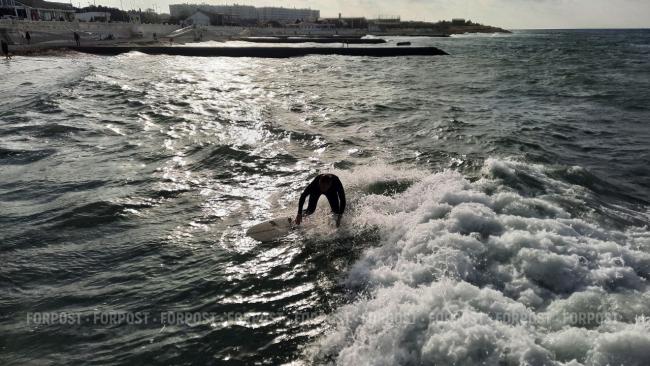 А в группе «Подслушано в Севастополе» сайта «Вконтакте» опубликовали серию фото Александра Кожевникова, рассказывающую историю отчаянного «сёрфингиста». Во время шторма мужчина пытался поймать волну на одном из городских пляжей, но был остановлен спасателями и сотрудниками полиции.