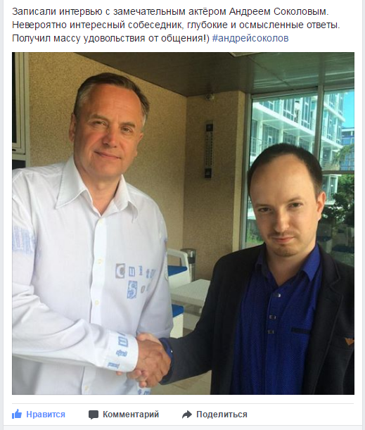 А журналист Арсений Веденин смог не только пообщаться с известным актером Андреем Соколовым, но и взять у него интервью. И ему наверняка многие позавидуют: даже если последних работ Соколова зрители и не видели, то уж его роль в «Маленькой Вере» точно помнят все.