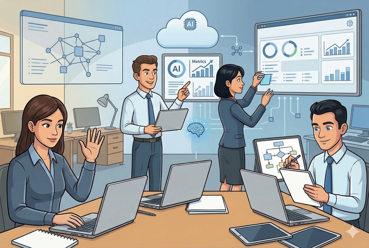 - Фокус на адаптации команд. Интерфейсы должны быть интуитивно понятными, а сотрудникам необходимо регулярное обучение работе с AI-ассистентами.