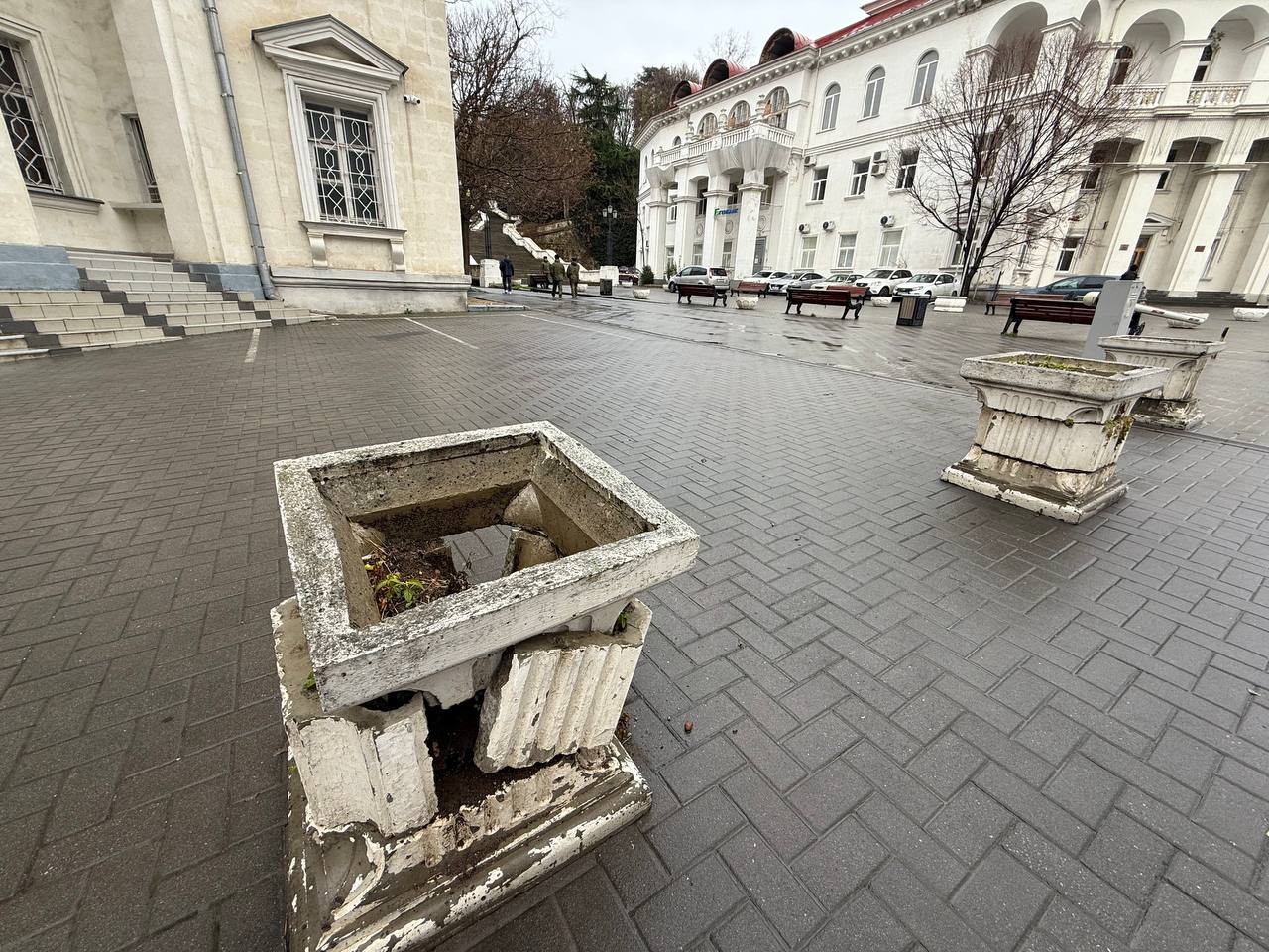 Для начала, наверное, нужно убрать то, что уже не подлежит восстановлению, — такая разруха в центре совсем не красит Севастополь, тем более что её и без вазонов хватает. Чтобы справиться с ней полностью, нужно очень много средств на реставрацию исторических зданий, реконструкцию проспекта Нахимова и улицы Ленина. Да, это есть в планах, но пока они не воплощены, пустые и разбитые вазоны добавляют атмосферности — но, увы, совсем не той, что ещё помнят горожане, когда говорят о чистом и белокаменном Севастополе.