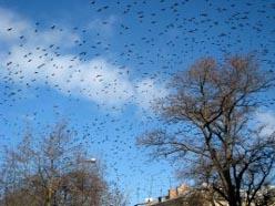Скворцы прилетели. Севастопольцы прикрывают головы...Те еще засранцы...