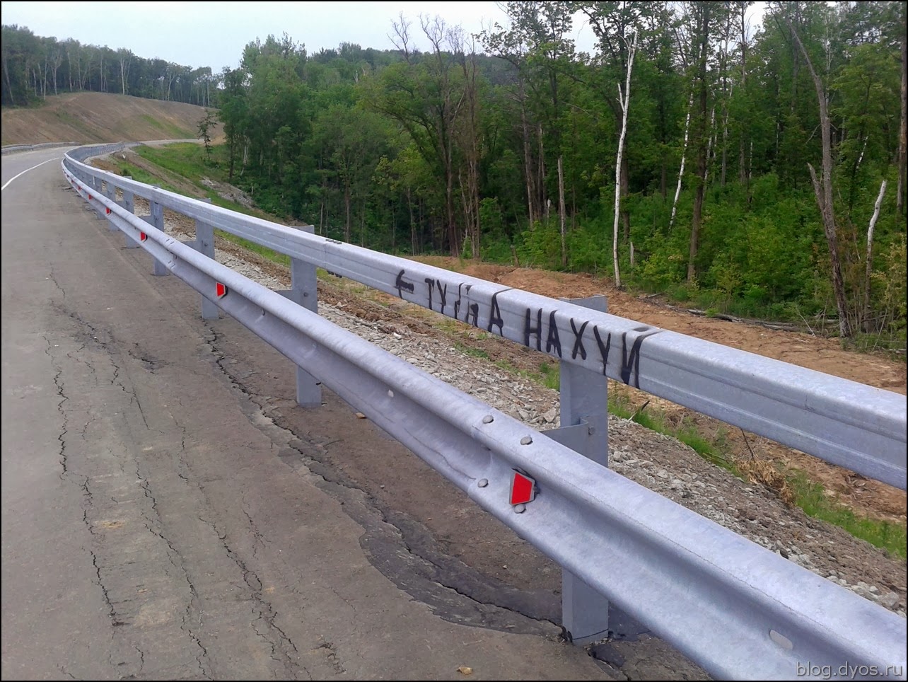 Отбойники на мосту совершенно никакие(читай аллюминиевые), но дело даже не в них, а в дешевом, ничем не усиленном бетоне, в который утоплены опоры: