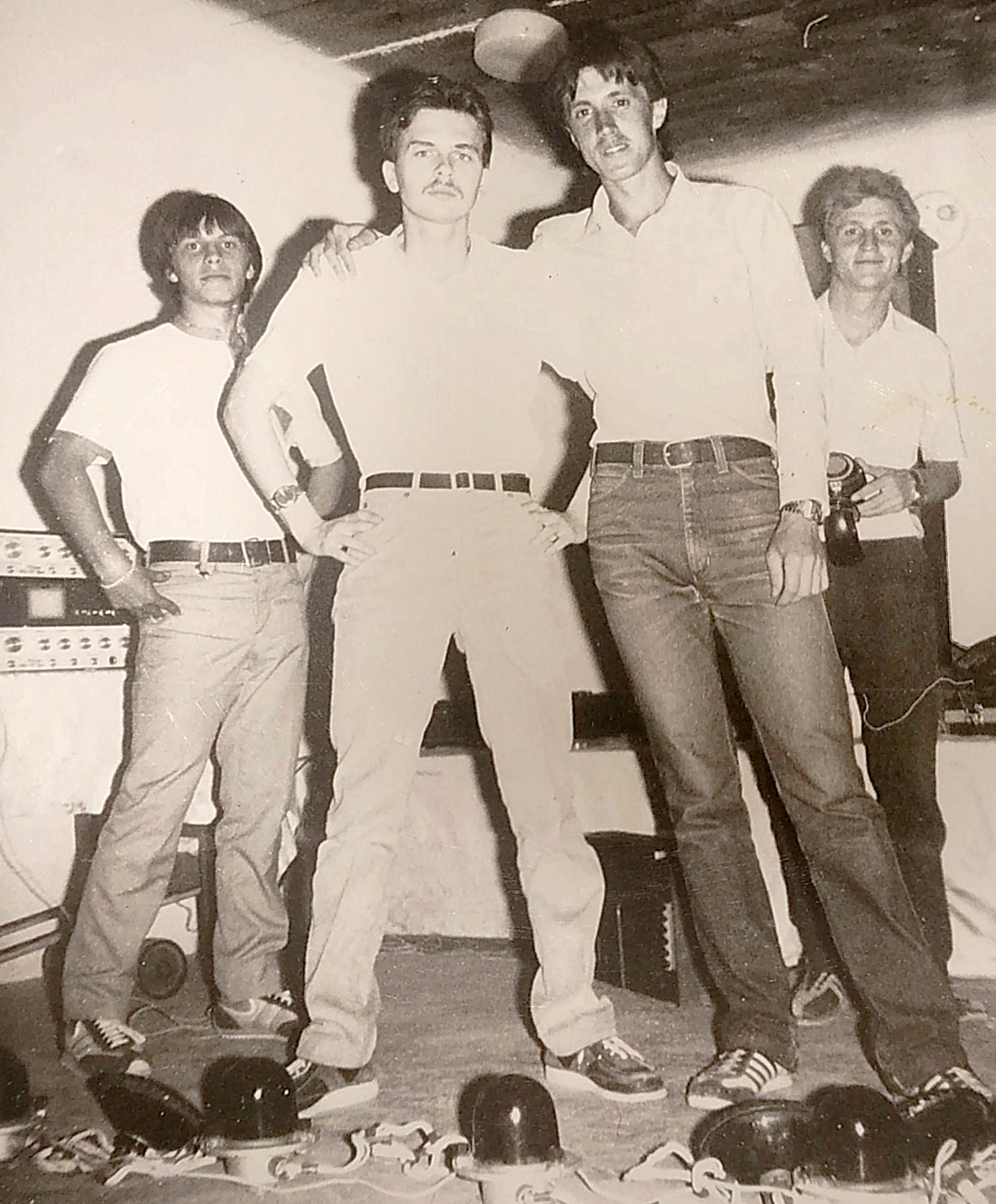 На танцплощадке стояли только колонки. Свет мы свой приносили, самодельный. Другая техника также могла быть самодельной. Светомузыка была сделана в виде блока с обыкновенными выключателями. Каждая кнопка был привязана к лампе определённого цвета. И моё творчество заключалось в том, чтобы в такт музыке нажимать на эти выключатели.