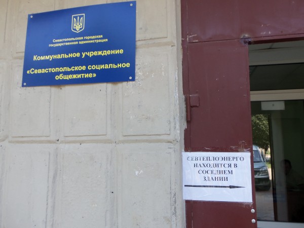 Добравшись по солнцепёку до дома с заветным адресом, ошибочно полагать, что все злоключения оставлены позади. В длинном цокольном этаже дома №3 расположились несколько учреждений, поэтому найти одну–единственную заветную дверь сразу не получится. Вахтёр КП «Севастопольское социальное общежитие», расположенного по соседству, рассказал, что ежедневно 20-30 человек ошибочно заглядывают к нему в поисках расчетного центра: «Когда устали отвечать, то вывесили наспех написанное от руки объявление. Думали на пару дней. Весит уже месяц!» И таких дверей со стрелками ещё несколько.