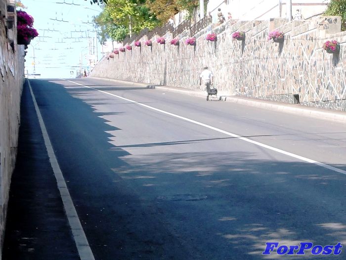 Действительно, цветы на обновлённом спуске тогда пришлись очень кстати, добавив мрачноватому «коридору» хоть чуточку теплоты и шика. Сорт петуний, высаженных в уличные контейнеры, оказался достаточно выносливым, чтобы пережить вечные сквозняки и прямые лучи нещадно палящего солнца, смог из выхлопных газов загруженной транспортом магистрали и жар, идущий от раскалённой гранитной облицовки.