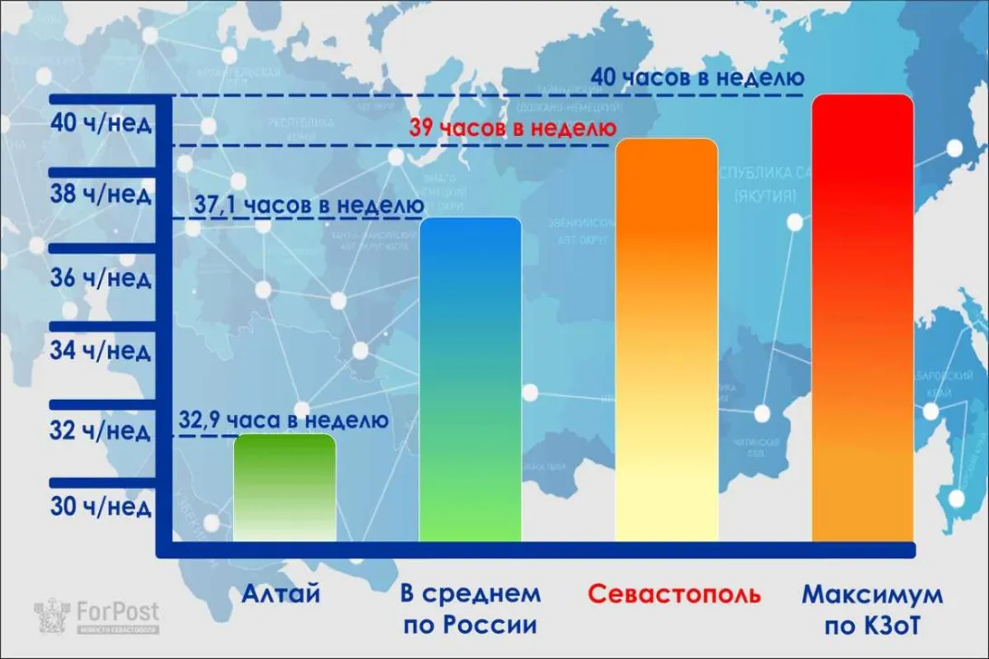 Отметим, что при самой длительной рабочей неделе севастопольцы не могут похвастаться самой высокой заработной платой в стране. По данным Росстата, среднемесячный заработок жителя Севастополя в 2018 году составил 31 тыс. рублей, тогда как в целом по России средняя зарплата равна 43,4 тыс. рублей.