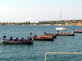Затем прошли парусные гонки ялов. Об их результатах мы сообщим чуть позже. Пока же отмечу, что это четвертый вид состязаний 84-й спартакиады ЧФ. О трех ранее проведенных в зачет спартакиады уже сообщалось. Это перетягивание каната, офицерское троеборье, стрельба из штатного оружия. По их результатам, как сообщил главный секретарь спартакиады Александр Радошнов, лидирует команда «Горизонт». На втором месте «Рассвет» - связисты флота, тройку призеров замыкает команда «Гроза».