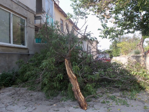 В 15 часов возле дома №6 по улице Гавена рухнул старый миндаль, перекрыв половину двора. «Только отъехала припаркованная машина и по двору прошла женщина, как раздался треск … Затем вход в подъезд завалило обломившимся стволом 40-летнего дерева, - рассказывают очевидцы. - К счастью, никого не задело и чудом не побило окна!»