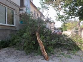 "«Только отъехала припаркованная машина и по двору прошла женщина, как раздался треск … Затем вход в подъезд завалило обломившимся стволом 40-летнего дерева, - рассказывают очевидцы."