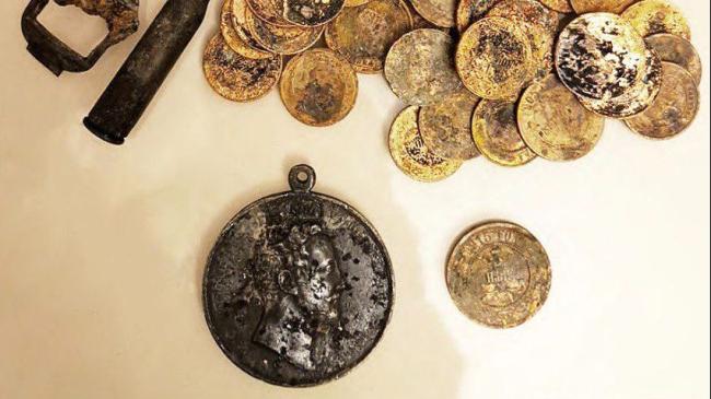 Но главной находкой стала серебряная нашейная медаль «За усердие» времён Николая I. Изображение императора на аверсе позволило точно определить принадлежность награды. По оценке археологов, подобные вещи передавались в семьях как реликвии — вероятно, поэтому владелец спрятал её вместе с деньгами.