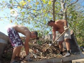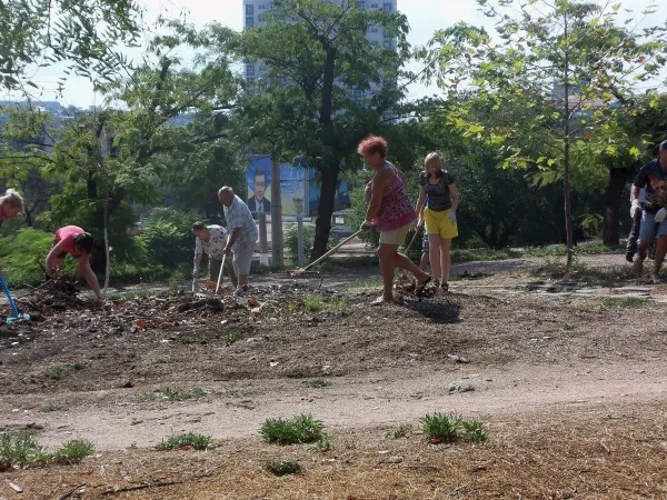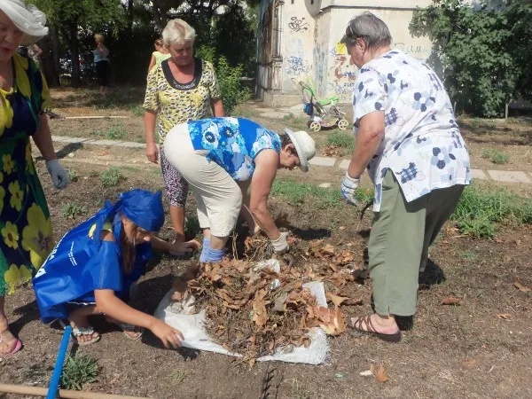 Пенсионеры и молодежь взялись за грабли, лопаты, веники и мётлы, чтобы убрать с участка мусор и опадающую листву. Пригодились и вёдра с известью, и кисти, и ножовки, и секаторы, и мусорные мешки. Несмотря на солнцепёк, жители работали не из-под палки, а «с огоньком»: белили бордюры и стволы деревьев, выпиливали сухостой. Общая идея не только отстоять свою придомовую территорию от захвата, но и преобразить, благоустроить её – объединила соседей. Люди радовались возможности чуть-чуть расслабиться после изматывающего пикета и улыбнуться друг другу.